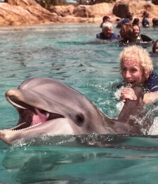 Shell, how incredible you and your family took your mother into your home and literally saved her life! My father was an alcoholic, and one of his brothers died of cirrhosis of the liver after living a life constantly topped up with alcohol. I never researched what that ending looked like, and it is remarkable that your mother was able to come out on top of it. I especially love that she went on to swim with dolphins. Every part of her story is incredible. Thank you for sharing it!
